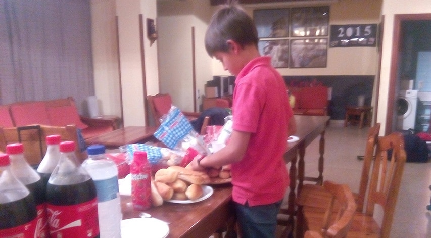 Por la noche, tras un tiempo de estudio, nos acomodamos en una casa grande, donde todos se peleaban por poner la cena, confirmamos que el juego de moda sigue siendo el lobo y disfrutamos de una peli metido cada uno en su saco.