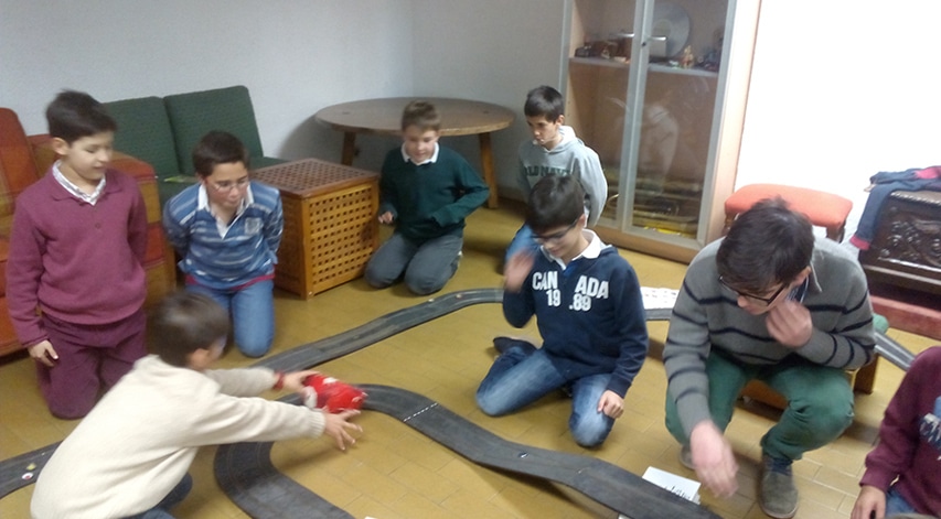 ¿Y qué hicimos? Una espectacular carrera de chapas en el circuito del escalextrix. Juan DF se hizo con el primer puesto tras una trepidante pugna con Borja P. A Carlos G se le atascó la primera cuesta, pero con un tenaz esfuerzo logró superar todos los obstáculos. Bosco P, el que más rápidamente avanzó. Partía desde la última posición, y logró ser finalmente 4°. Trepidante fue también la carrera entre Mateo V, Luis P, Álvaro C y Fernando DV, siempre a la par.
